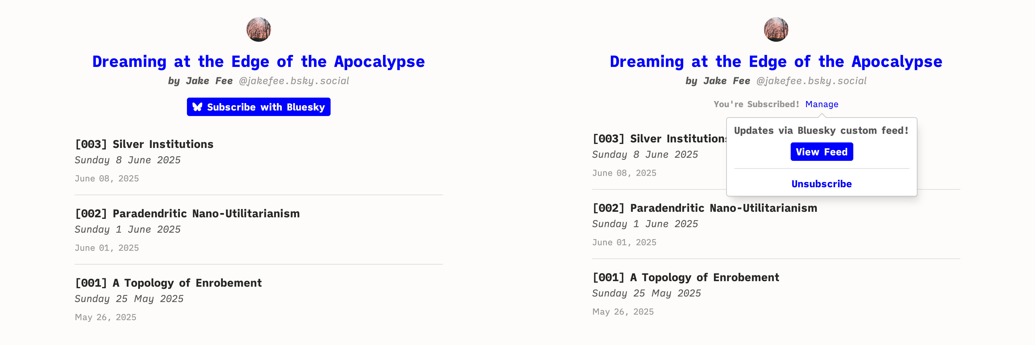 a custom Bluesky feed we generate, unique per user, linking to new posts in any publications you're subscribed to